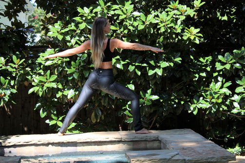 LEATHERETTE: This fabric is best for athleisure wear and not recommended for working out. It's sexy matte finish offers sleek snugness, high compression and moisture management. This leatherette fabric will have you feeling like Bat Girl and is perfect for the party! Available in Matte BLACK.