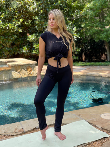 COMPRESSION Fabric: is 80% nylon & 20% spandex and made to "hold it all in". This thicker athleisure wear fabric is best for outdoor workouts, cooler climates or winter months. Its high compression holds everything in comfortably. This is the ideal fabric to wear when getting a brisk walk in before heading to meet your bestie for a refreshing beverage. Available in BLACK.