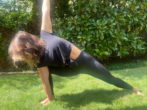 Our fabulous leggings have a length of approximately 34-36" long, hitting at most ankles. The high waist legging sits an inch above most belly buttons. Our leggings feature Es Privata's patented panty technology, helping to minimize the appearance of your privacies to the outside world.